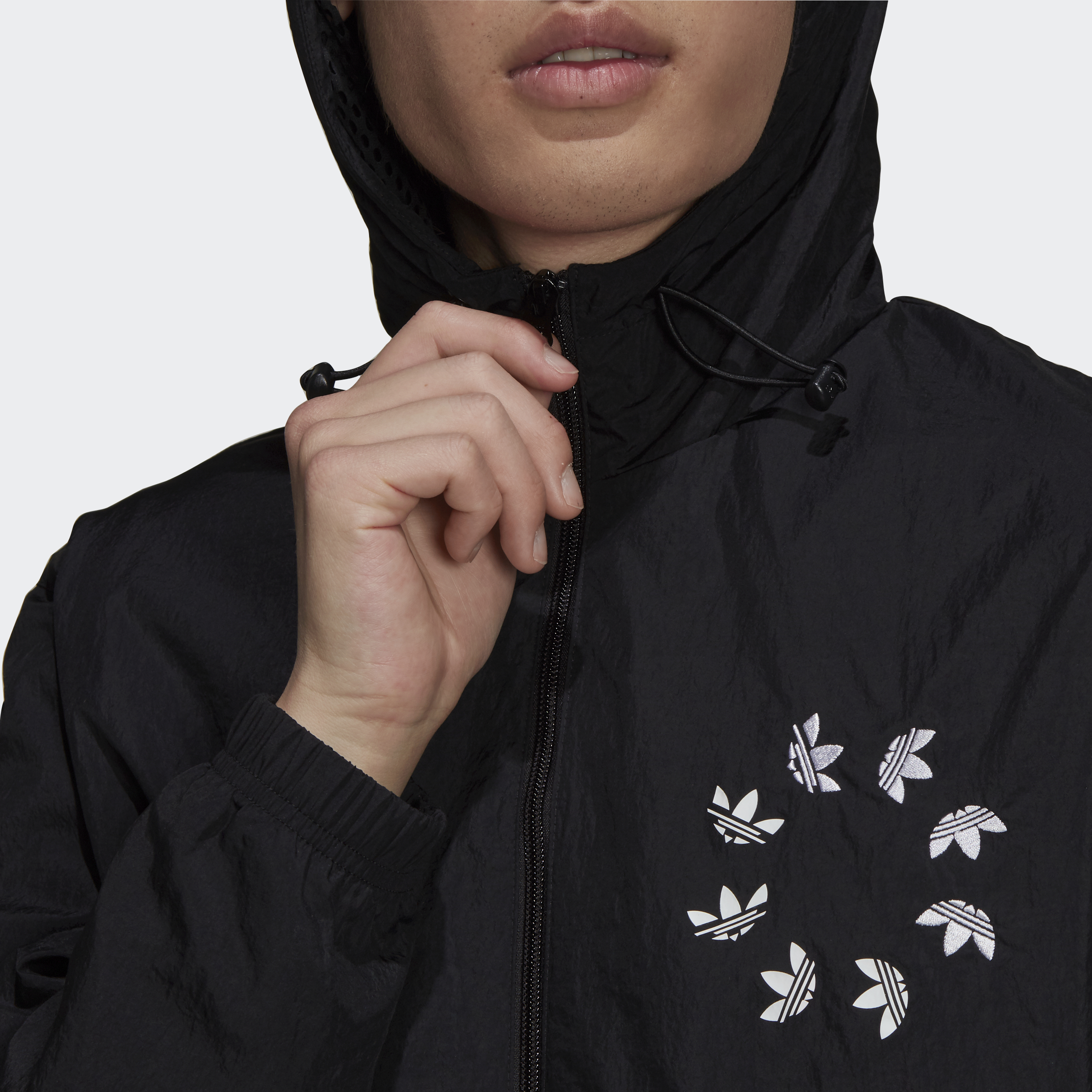 A little wind won't slow your roll. Not when you're layered up in the lightweight fabric and authentic style of this adidas windbreaker. Zip in and step out flashing a swirl of Trefoils. A nod to your creative spirit. Adjustable details help keep out blustery air. This product is made with Primegreen, a series of high-performance recycled materials.