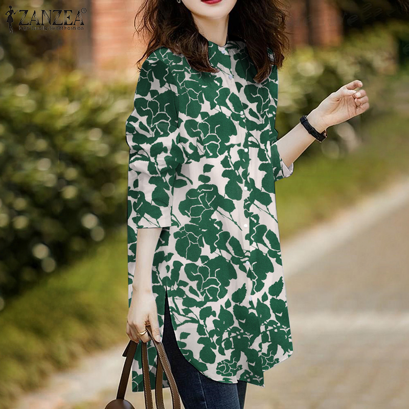 ZANZEA Womens Floral Print Vintage Blouse Long Sleeve O Neck Summer Holiday Shirt Tops #7