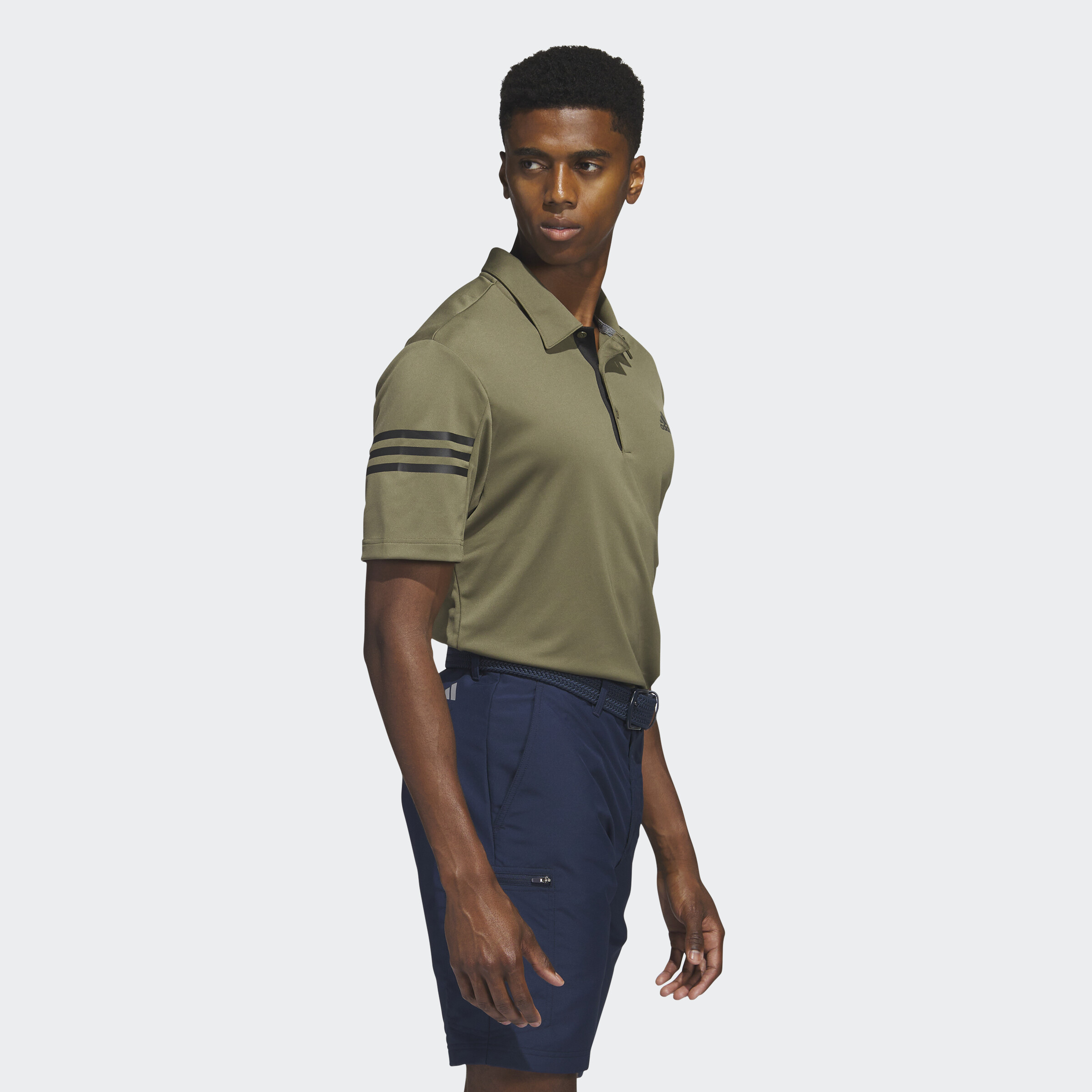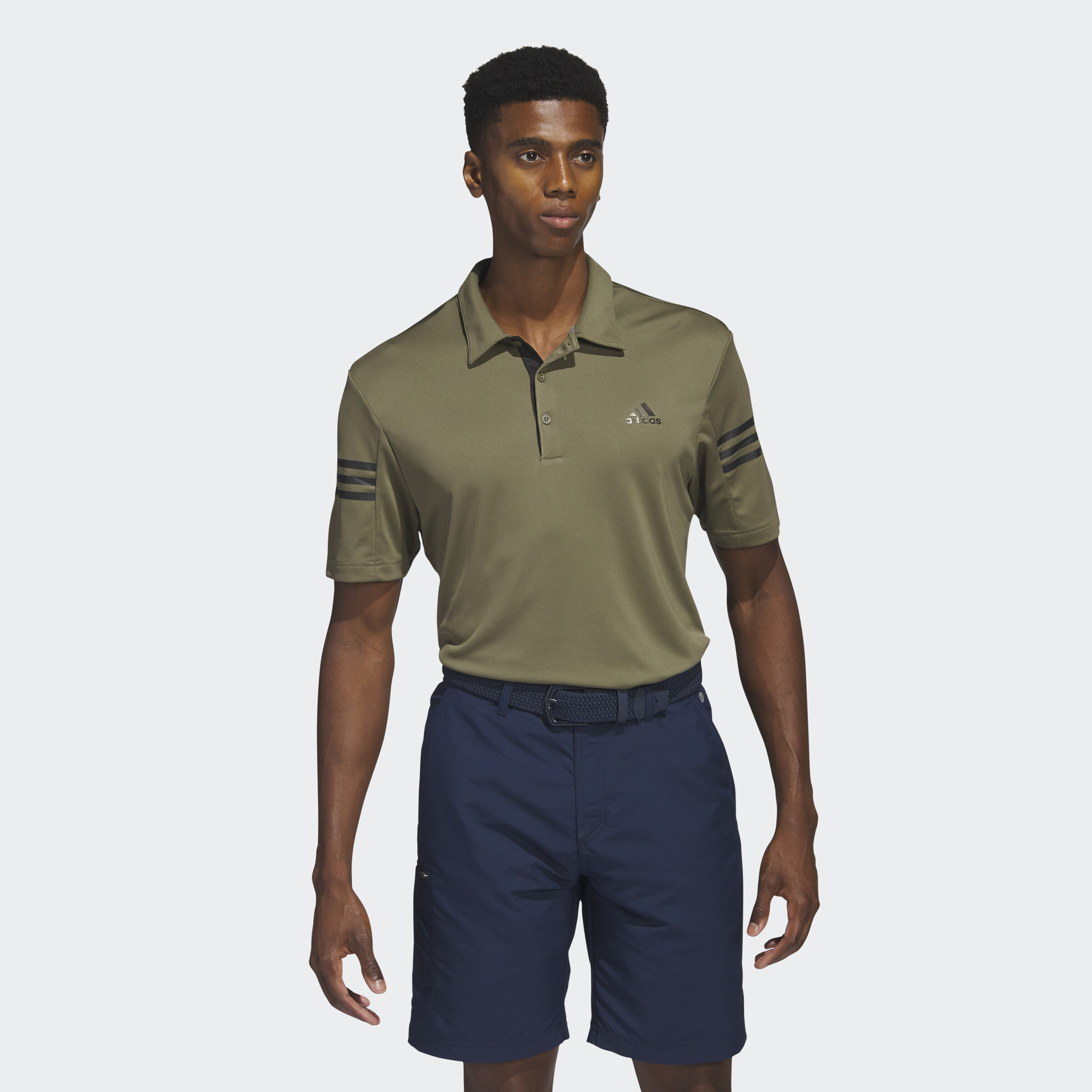 Tee off in 3-Stripes style in this golf polo shirt. The soft, lightweight fabric is made with AEROREADY to manage moisture and keep you dry. An adidas Badge of Sport on the chest completes the look. Made with 100% recycled materials, this product represents just one of our solutions to help end plastic waste.