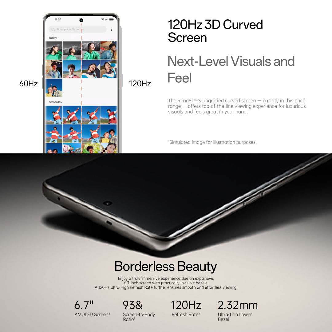OPPO Reno8 T 5G / 108MP Portrait Camera / 120Hz 3D Curved Screen / 67W SUPERVOOC / Free True Wireless Earbuds Worth $79