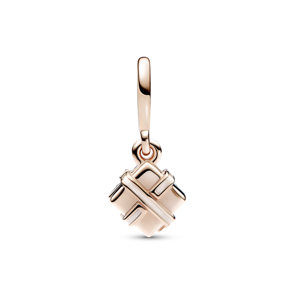 A sweet gift to make your loved one's birthday even more special. The Openable Birthday Gift Dangle Charm is finished in warm 14k rose gold plating and is shaped like a gift box with a soft pink enamel ribbon and bow. Open the box and you'll discover a raised heart with the engraved message "Happy Birthday." A special jewellery gift they can wear all year to remember that birthday glow.