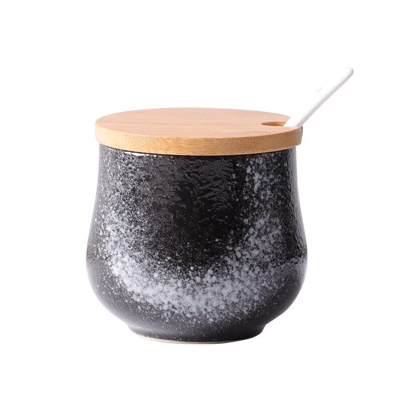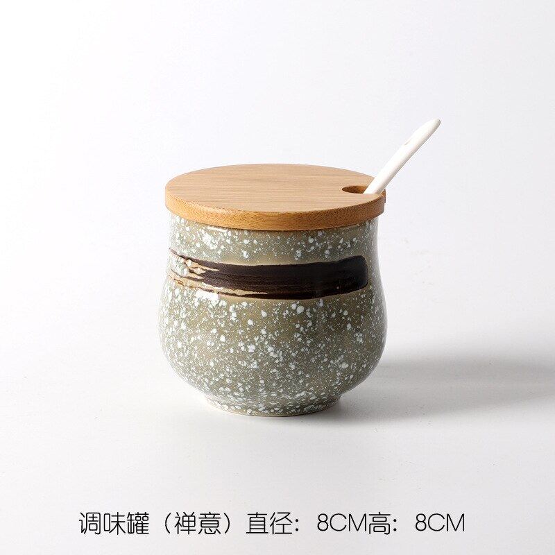 Creative Japanese-Style Ceramic Seasoning Jar Set Restaurant With Lid Spoon Salt Pepper MSG Jar Home Kitchen Seasoning Bottle