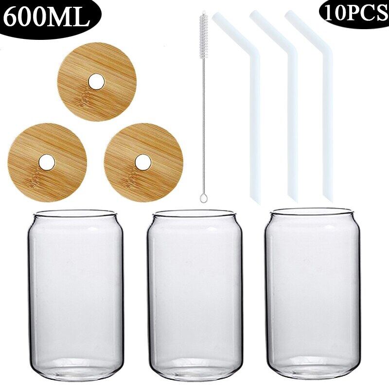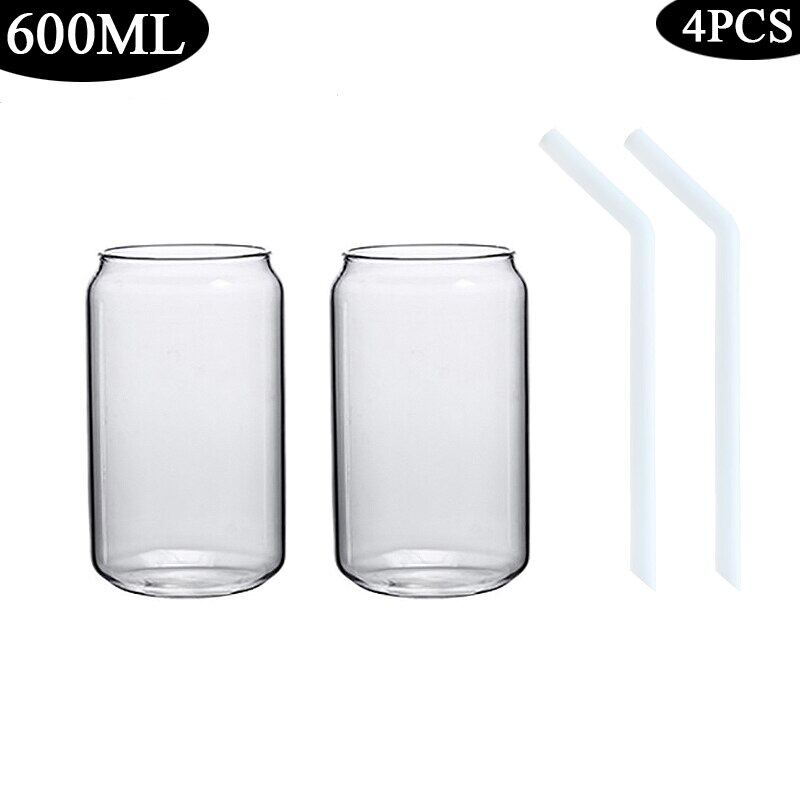 420/600ML 2-6PCS Transparent Glass Cup With Lid Straw Bubble Tea Cup Juice Coffee Beer Can Milk Mocha Breakfast Mug Drinkware