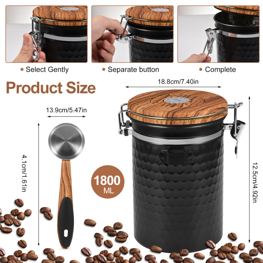 2.Perfect size: with this stainless steel tin with 2800 ml you have the possibility to store 1 kg of coffee beans and can therefore store the complete contents of a coffee packaging in this container